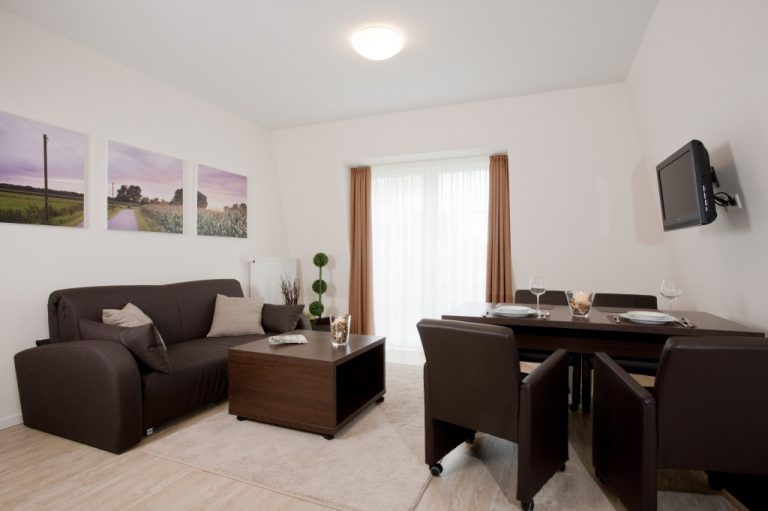 Unsere geräumige 2-Zimmer-Suite bietet Platz für bis zu 4 Personen. Sie verfügt über zwei miteinander verbundene Schlaf- bzw. Wohnzimmer, die mit einer Küchenzeile, einer Sitzecke und einem Esstisch ausgestattet sind.